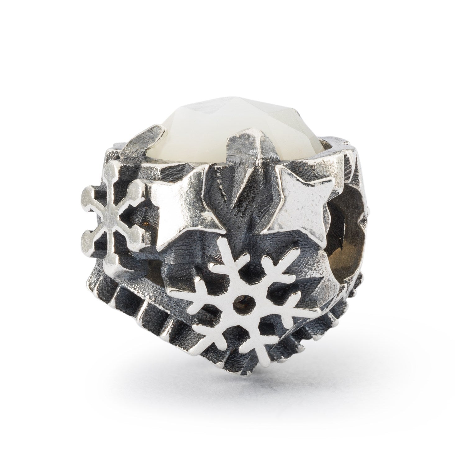 This bead embraces a Mother of Pearl and is beautifully decorated with snowflakes in different shapes and shiny stars.
